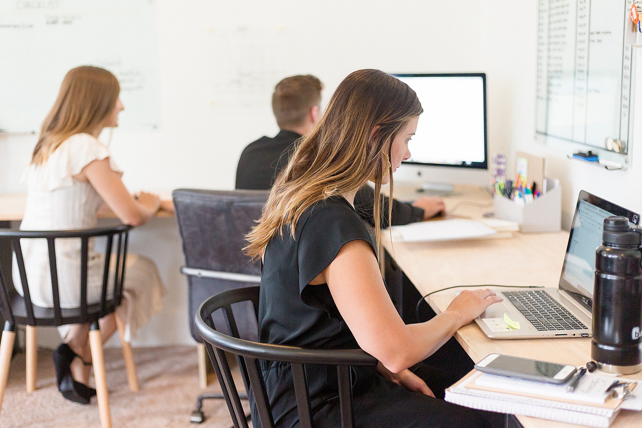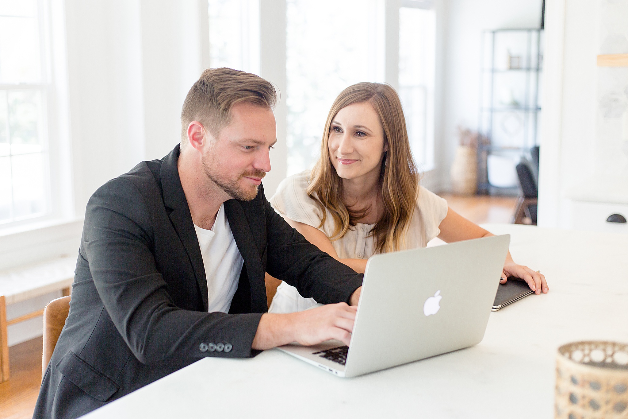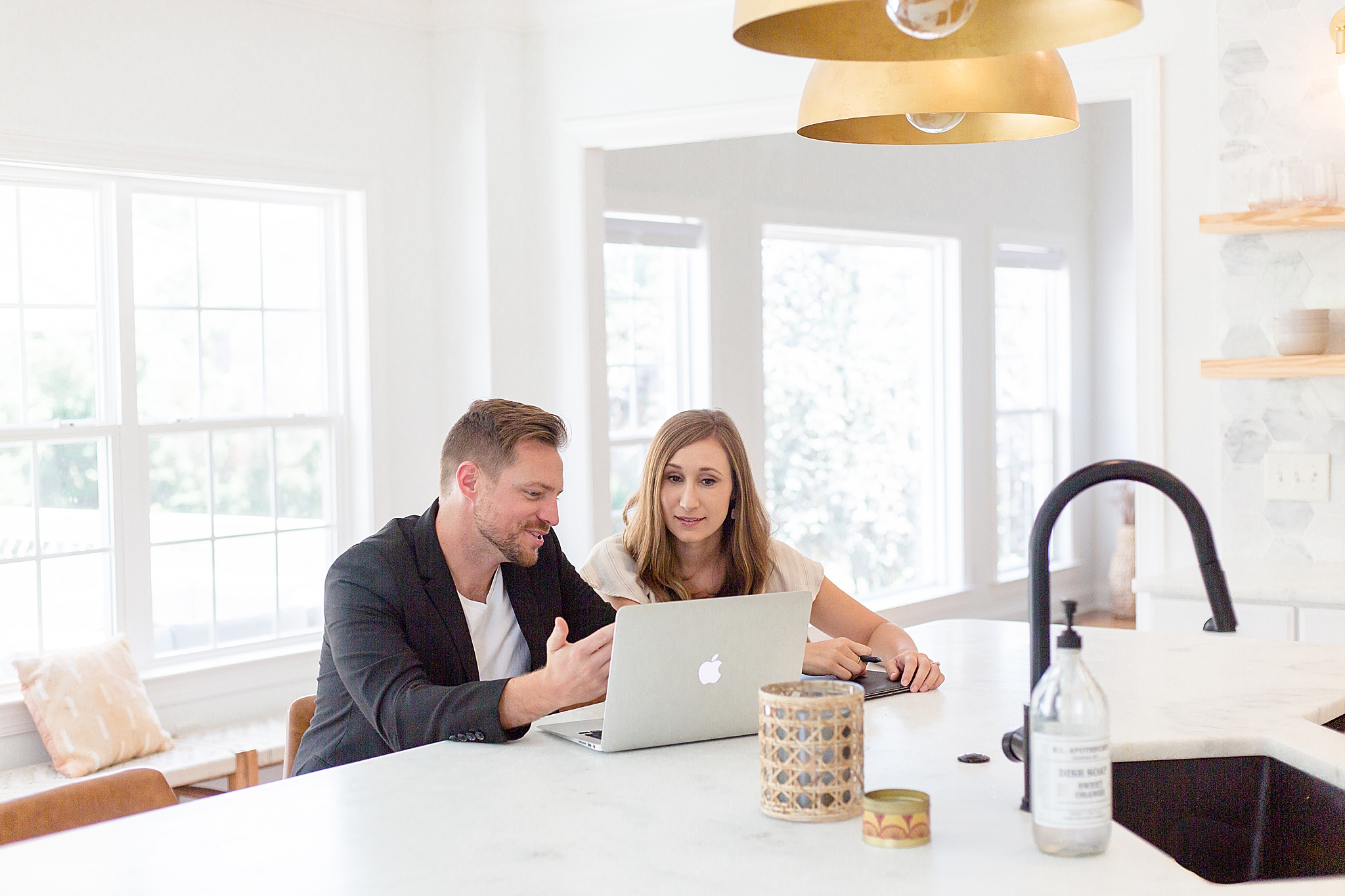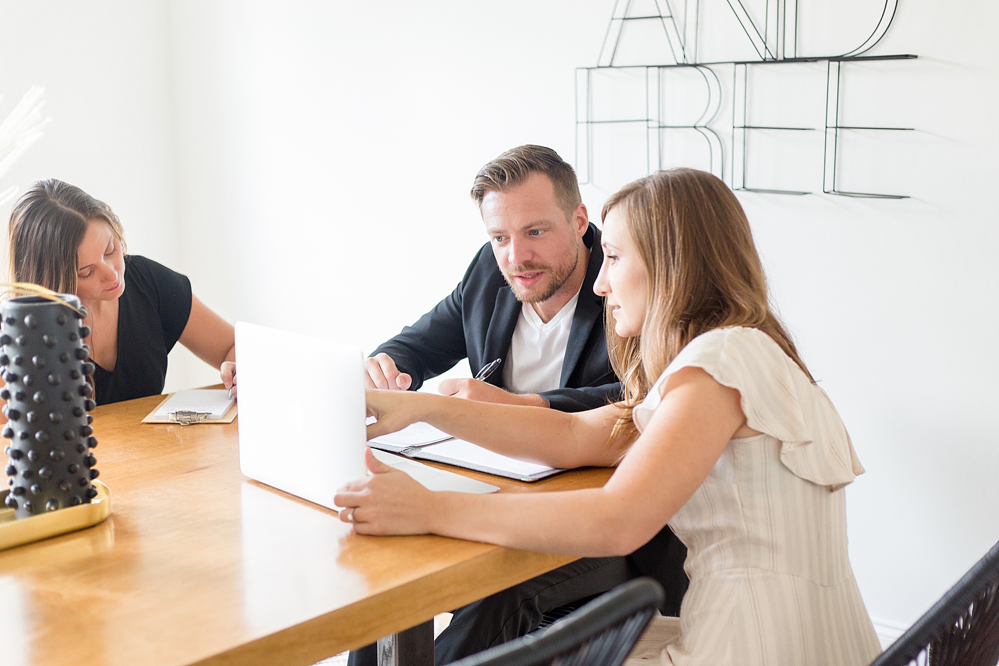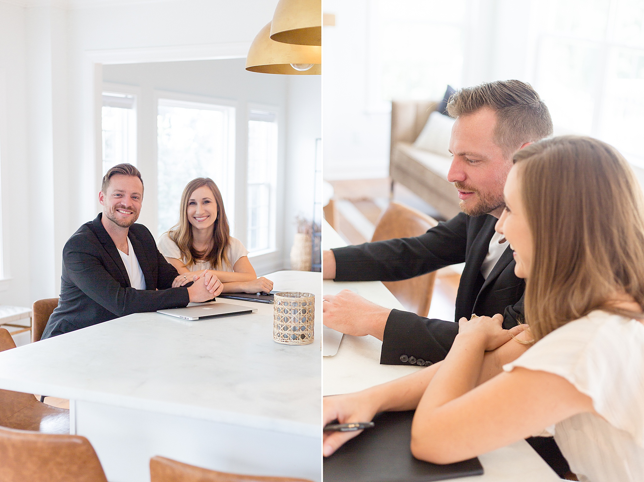 Working with Casey, Kyle, and Amie was a dream come true. Their Franklin TN branding session took place in Casey and Kyle's beautiful home. With a perfect patio and their home office, it made the most sense to capture their branding session in the places they work most as a team. Branding sessions are about more than just traditional headshots – although we took those as well! They're a chance to document what makes your brand unique and special. For these three, that meant capturing the home office space they've designed, and some “working” portraits.