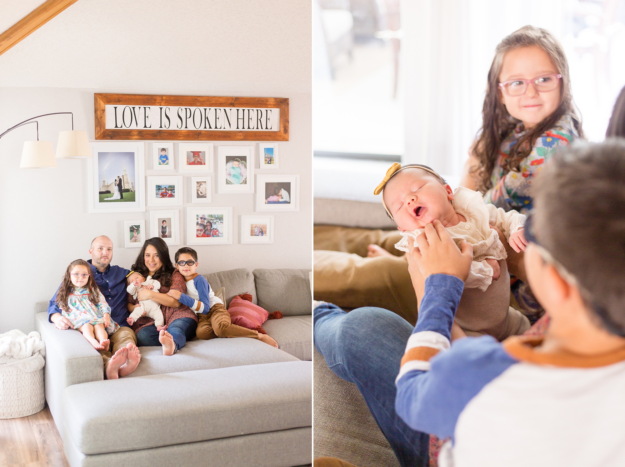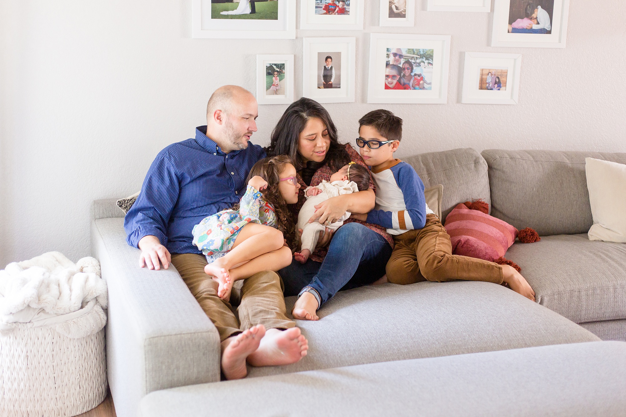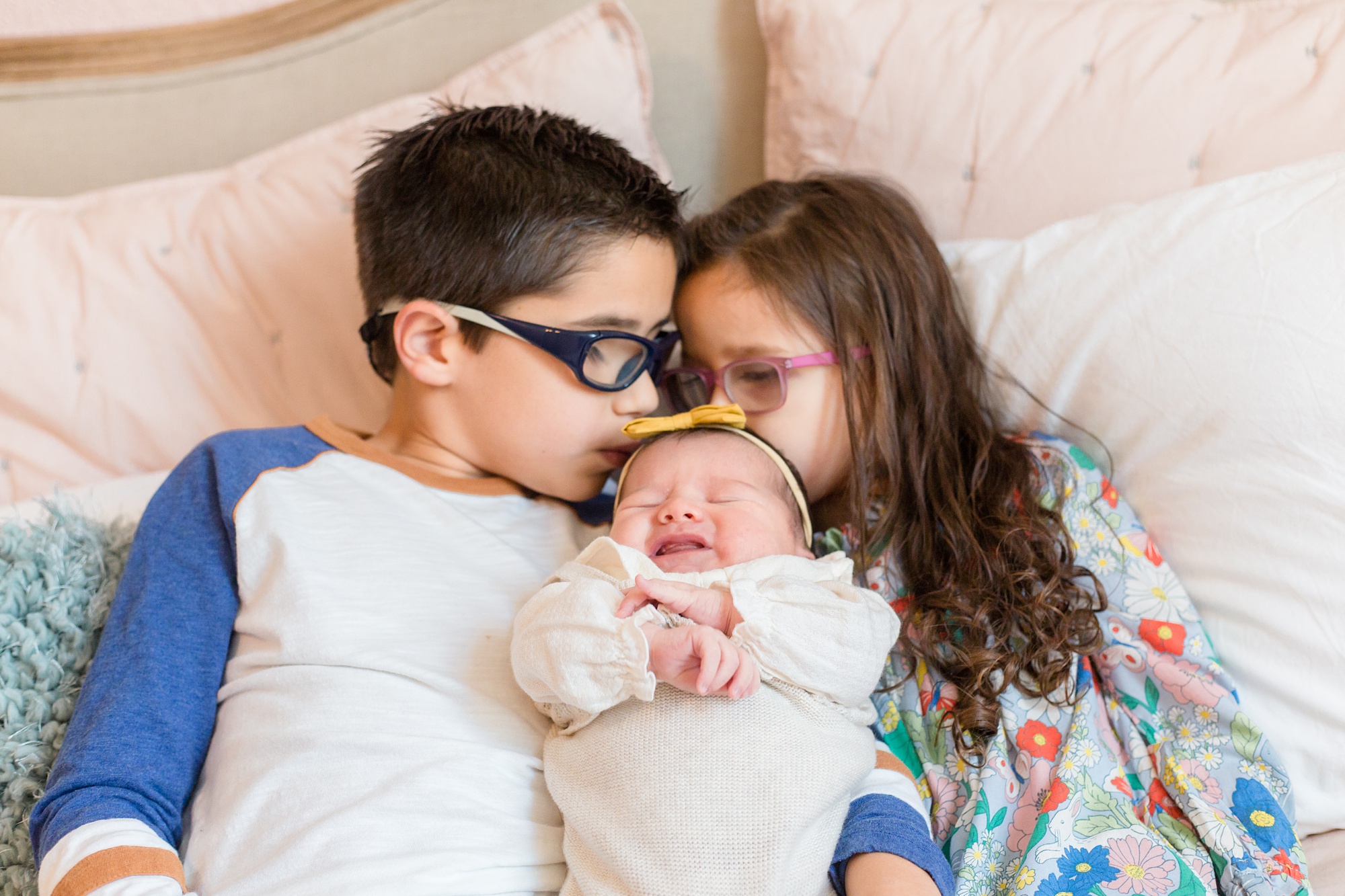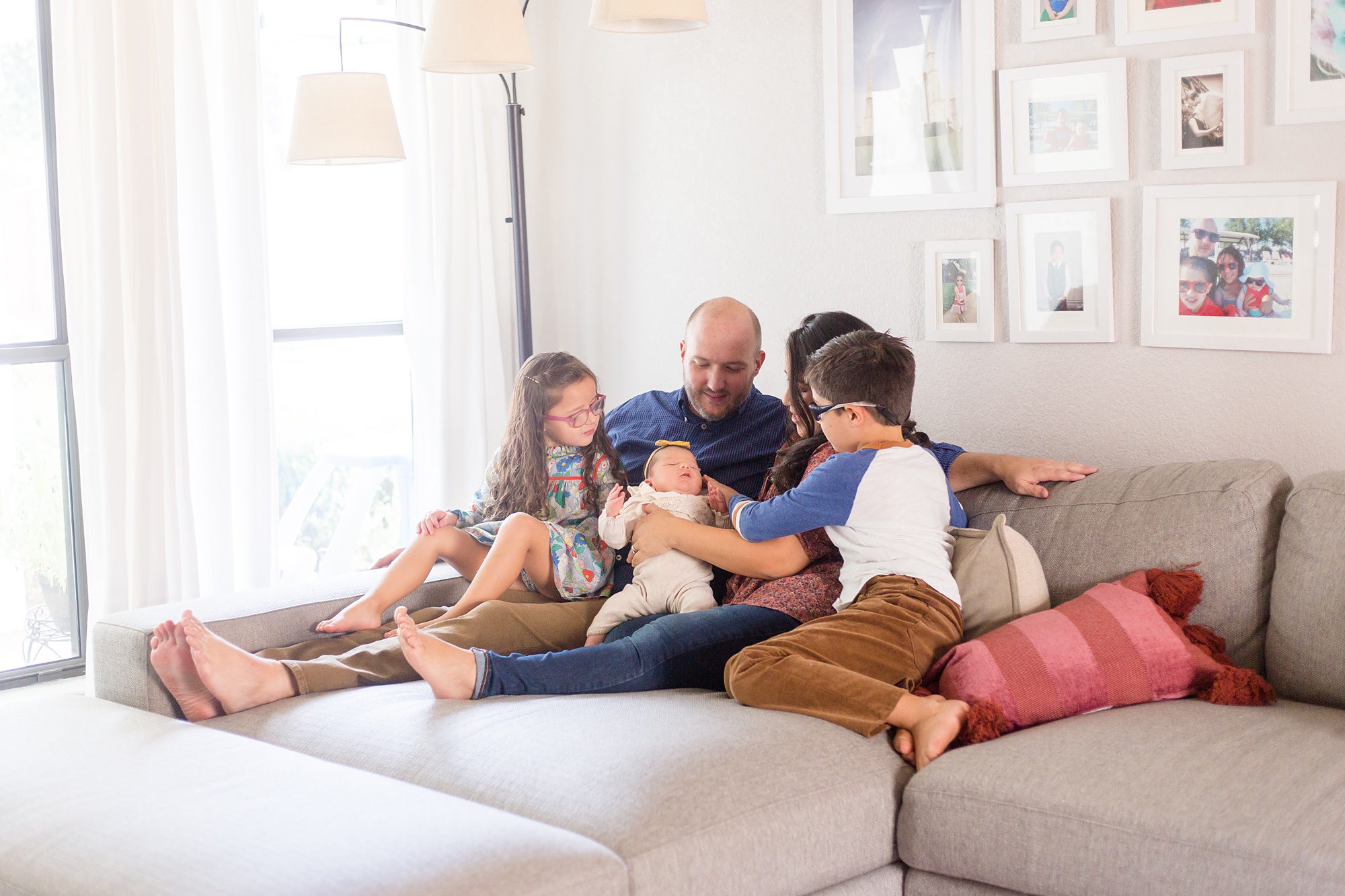 Bringing a new baby home is always SO exciting… and probably a little stressful, if I'm honest. But lifestyle newborn sessions are just such a great way to document your baby's first days at home. For the Garber family, that meant time spent in their beautiful living room – wait until you see their gallery wall! I encouraged them to cuddle up and gush over their new little girl. And after that, we headed to one of their favorite rooms in the house. Her big brother and sister read her a book while her dad fed her. Honestly, it was SO calm and enjoyable for everyone. I loved every minute.