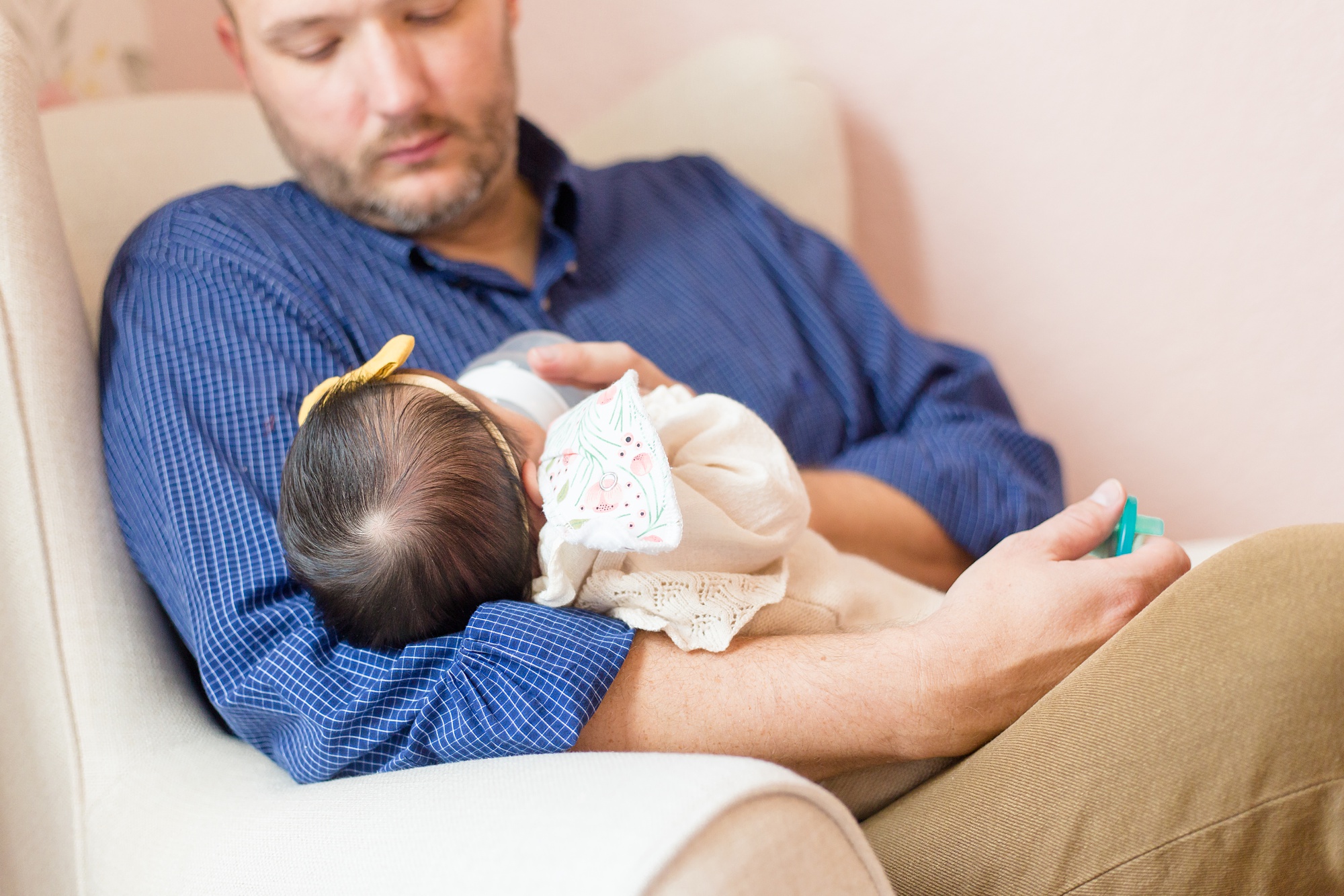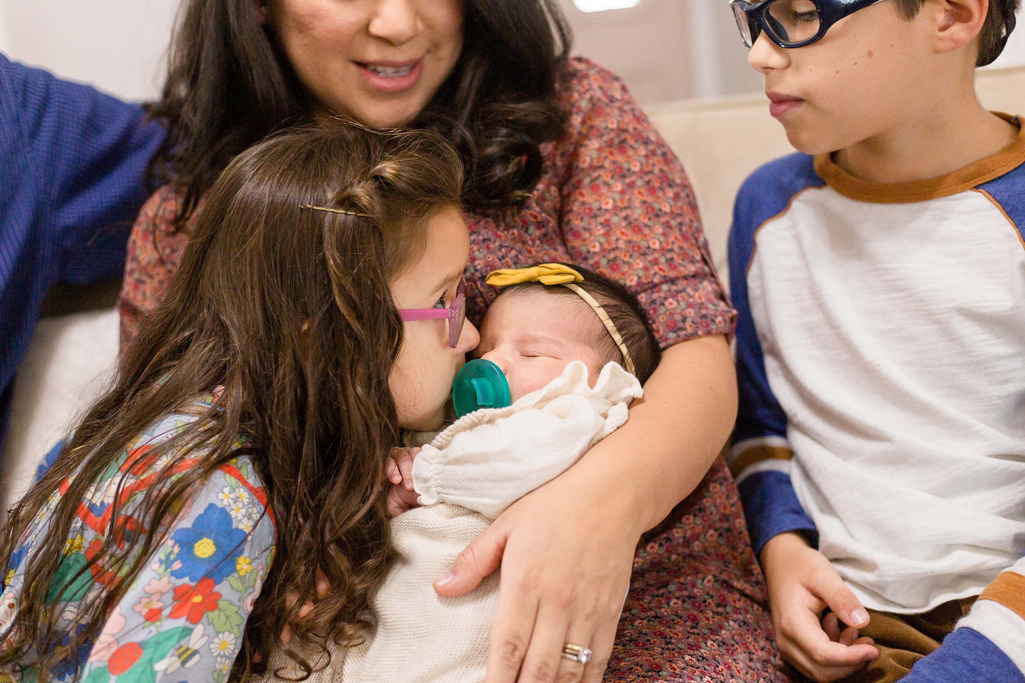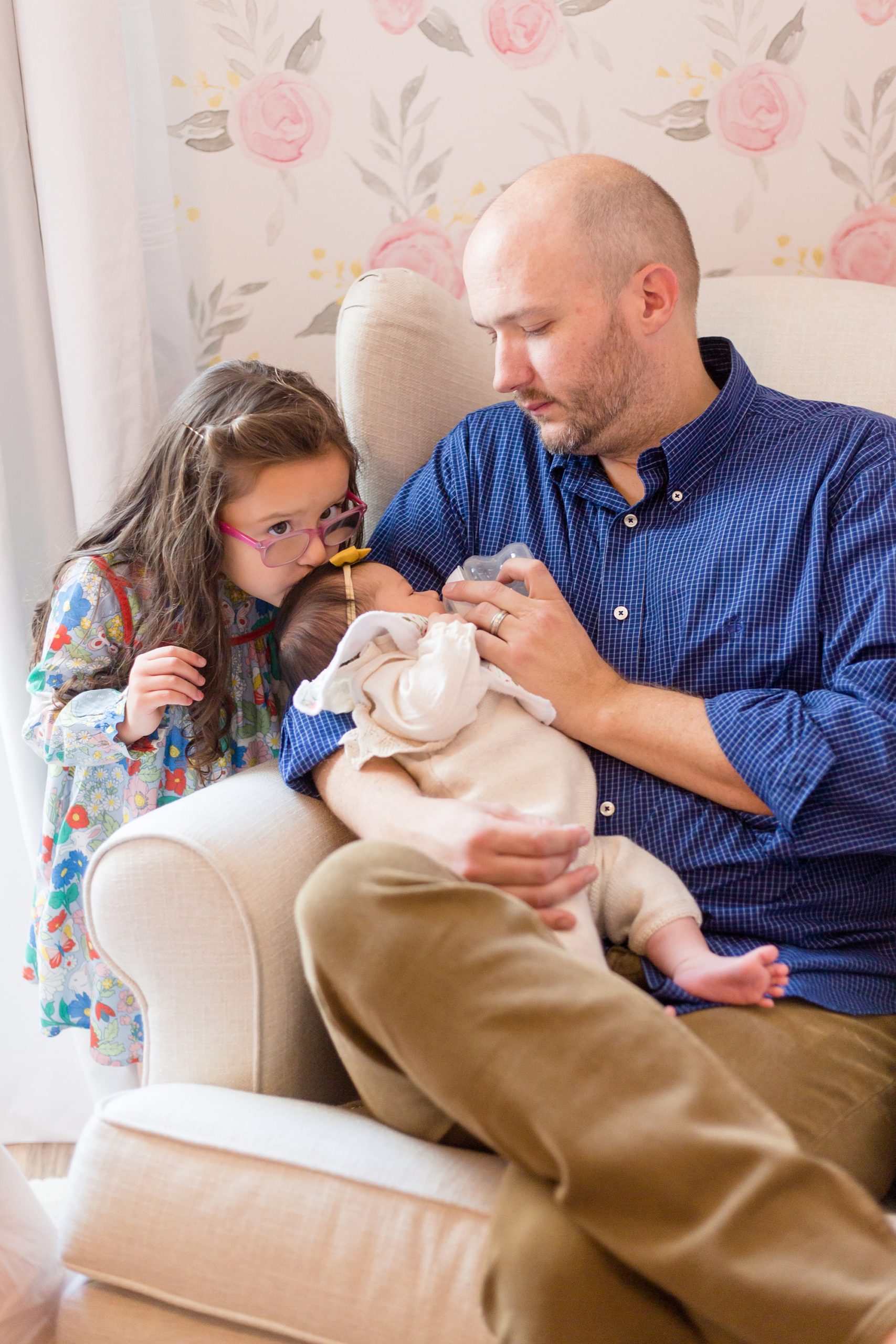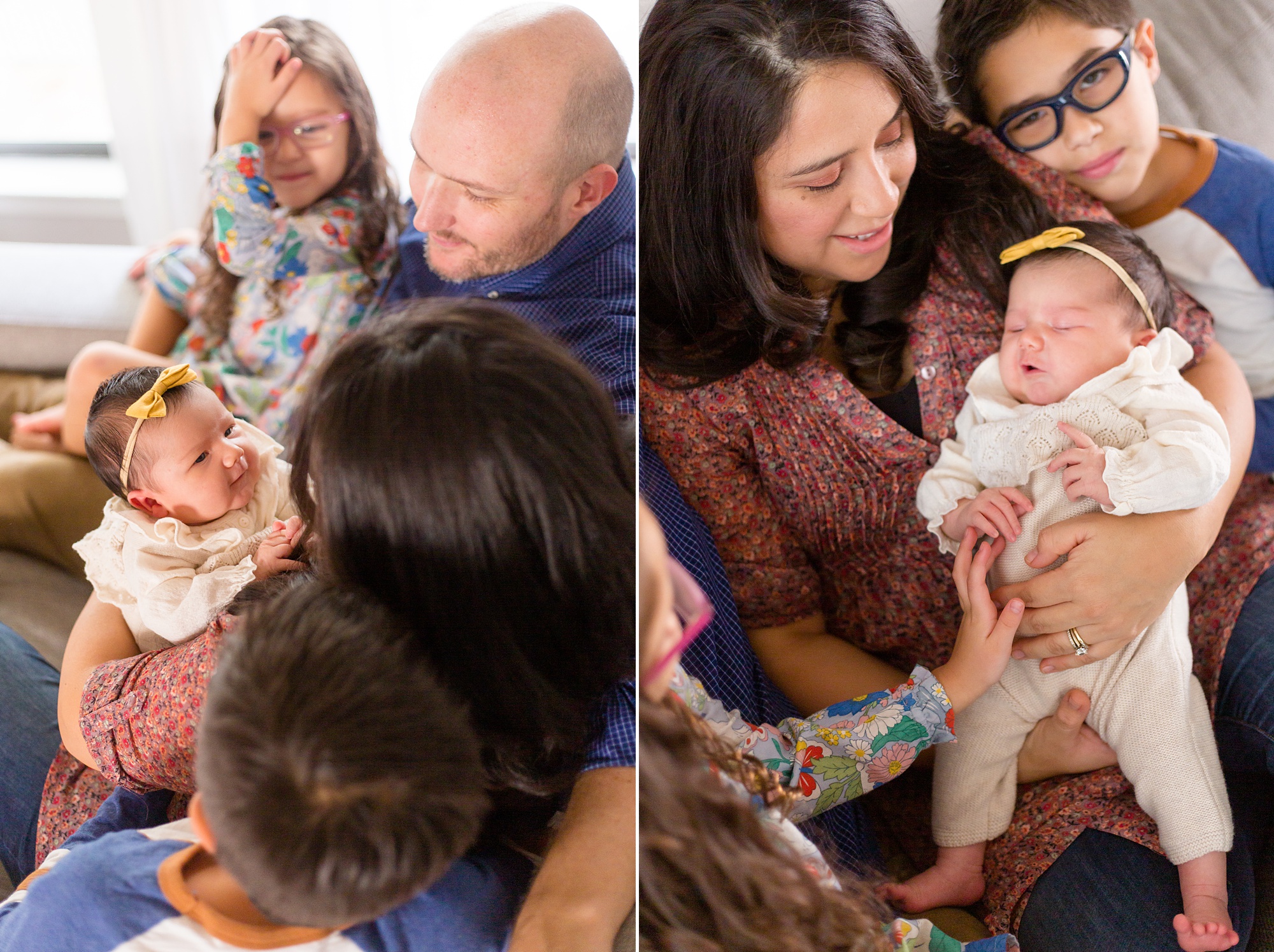 Bringing a new baby home is always SO exciting… and probably a little stressful, if I'm honest. But lifestyle newborn sessions are just such a great way to document your baby's first days at home. For the Garber family, that meant time spent in their beautiful living room – wait until you see their gallery wall! I encouraged them to cuddle up and gush over their new little girl. And after that, we headed to one of their favorite rooms in the house. Her big brother and sister read her a book while her dad fed her. Honestly, it was SO calm and enjoyable for everyone. I loved every minute.