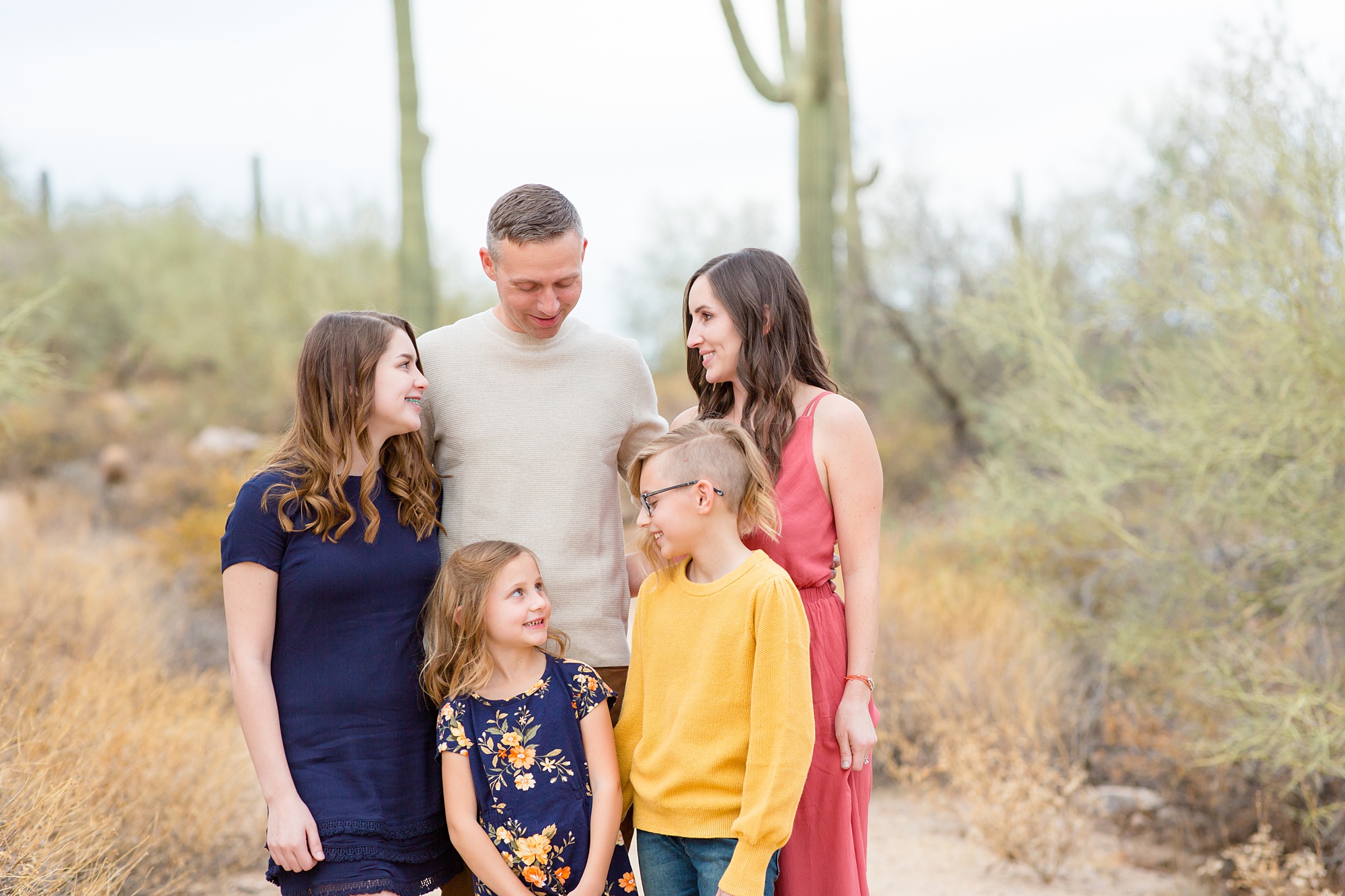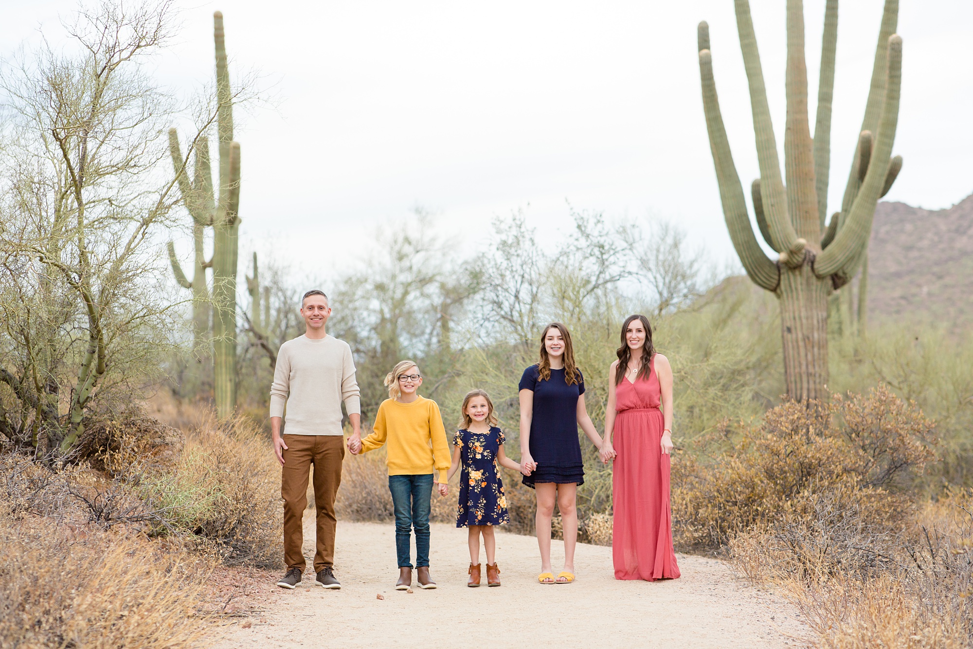 On my most recent trip to Phoenix, Arizona, I captured two sets of mini sessions. The first was at Papago Park. The others? These dreamy Usery Park fall minis!! Usery Park is one of my favorite places to photograph families in Arizona. It's just gorgeous! With tall cacti and stunning views, it feels as Arizona as you can get… which is just what I want! I love the feeling of these desert family photos – and I hope you do, too!