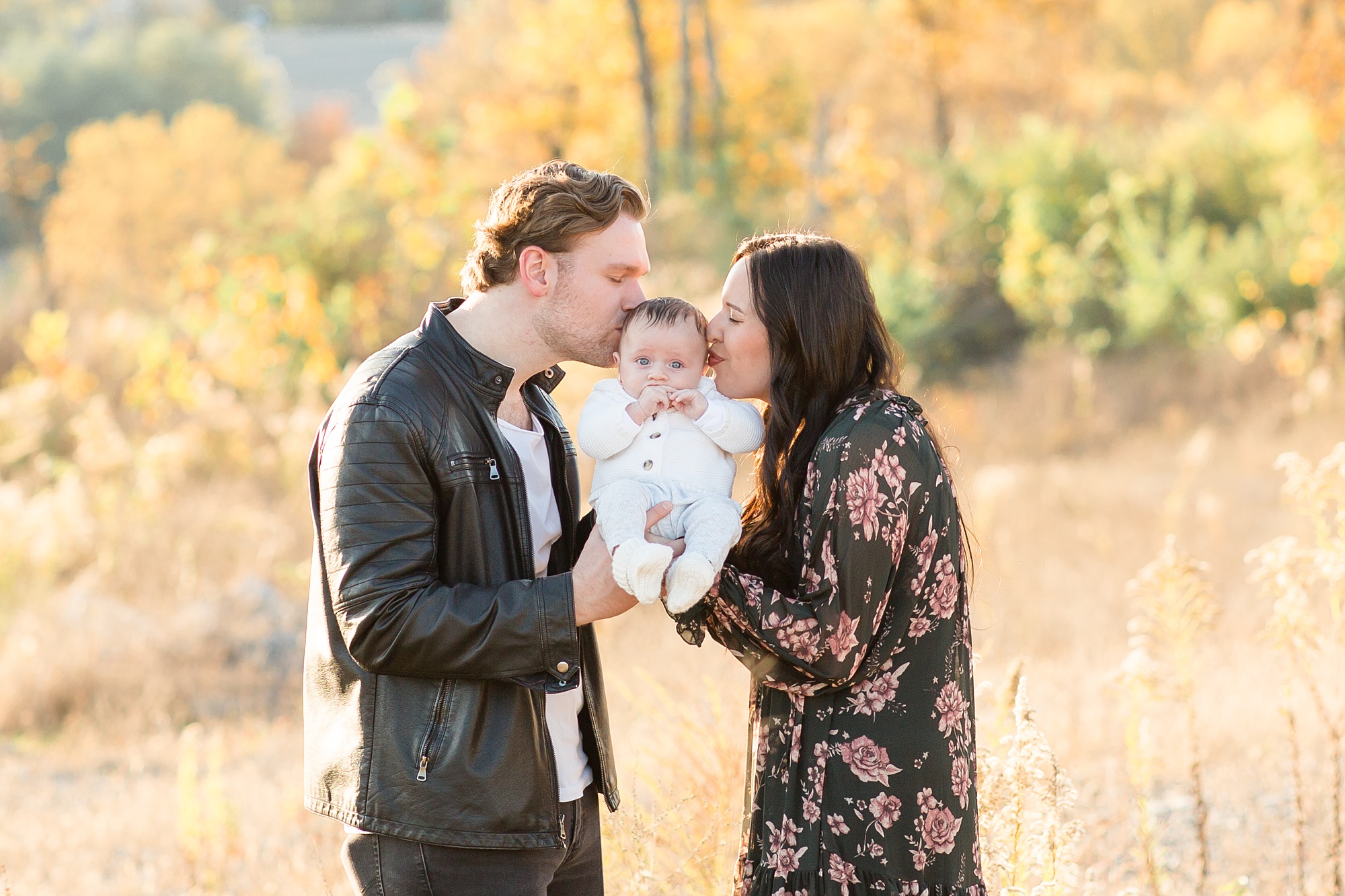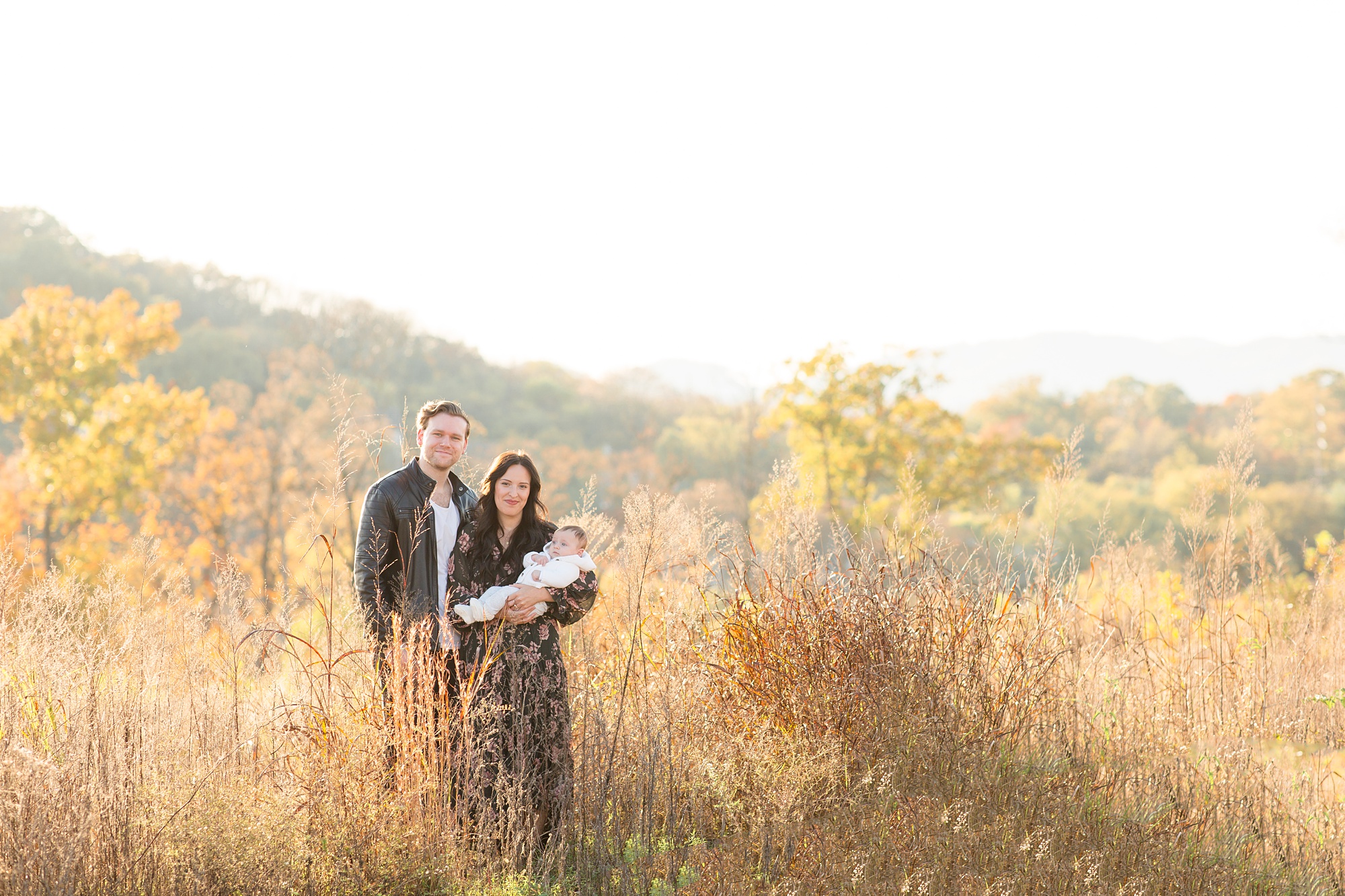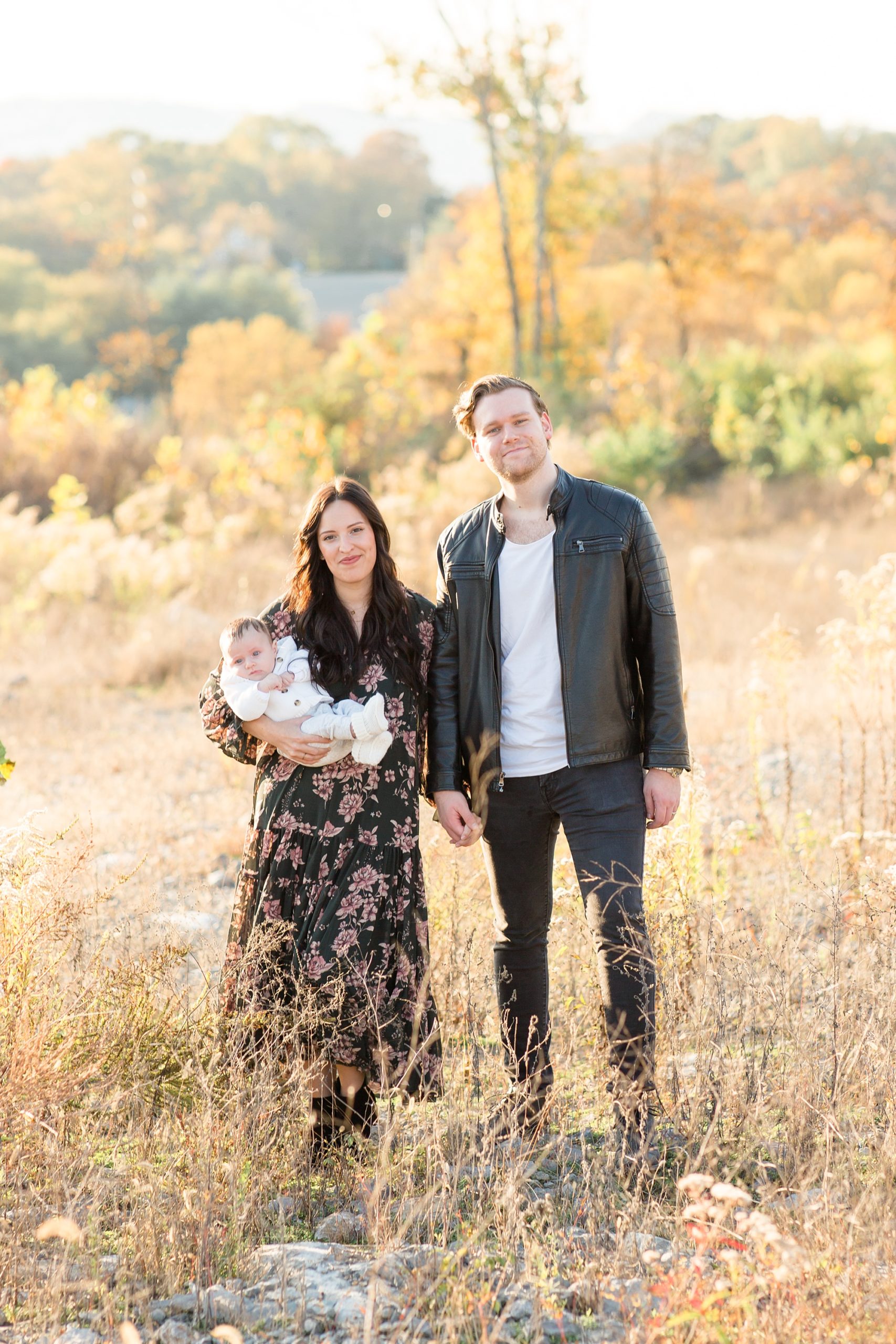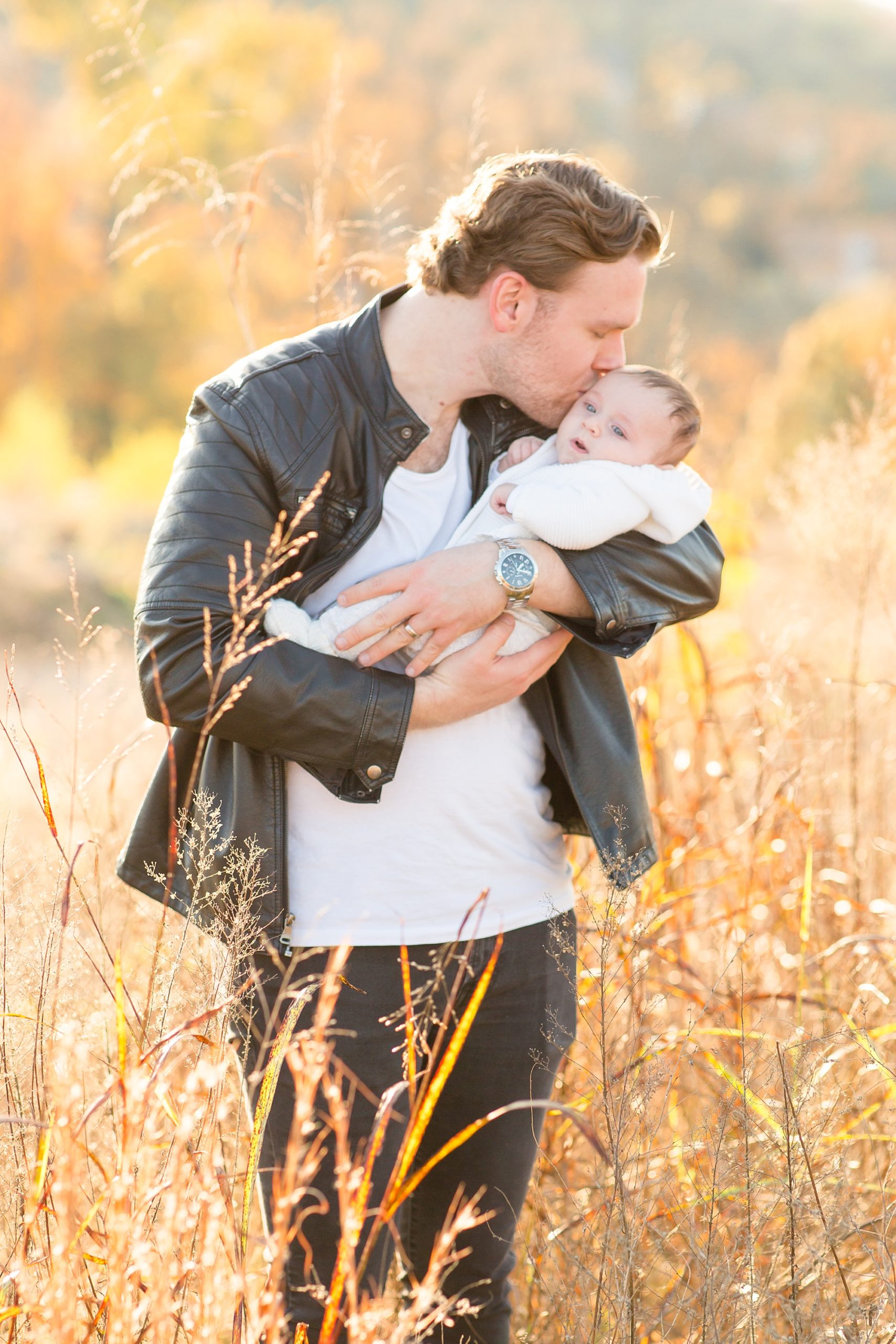 Stephanie and her husband showed up looking like models and with the most perfect glowing light, we captured their fall family session. I'm so appreciative that they trusted me to find the perfect spot (in a cul-de-sac) for the photos. It just goes to show you that anything is possible when it comes to the right light and trusting clients! During our session, I got to see more of the Morris family. I loved learning about them all and watching them with their sweet little guy. He was all bundled up but was great for us! I even got some little laughs and smiles as his parents played with him throughout the session. Capturing new parents with their babies is such a special part of family sessions.