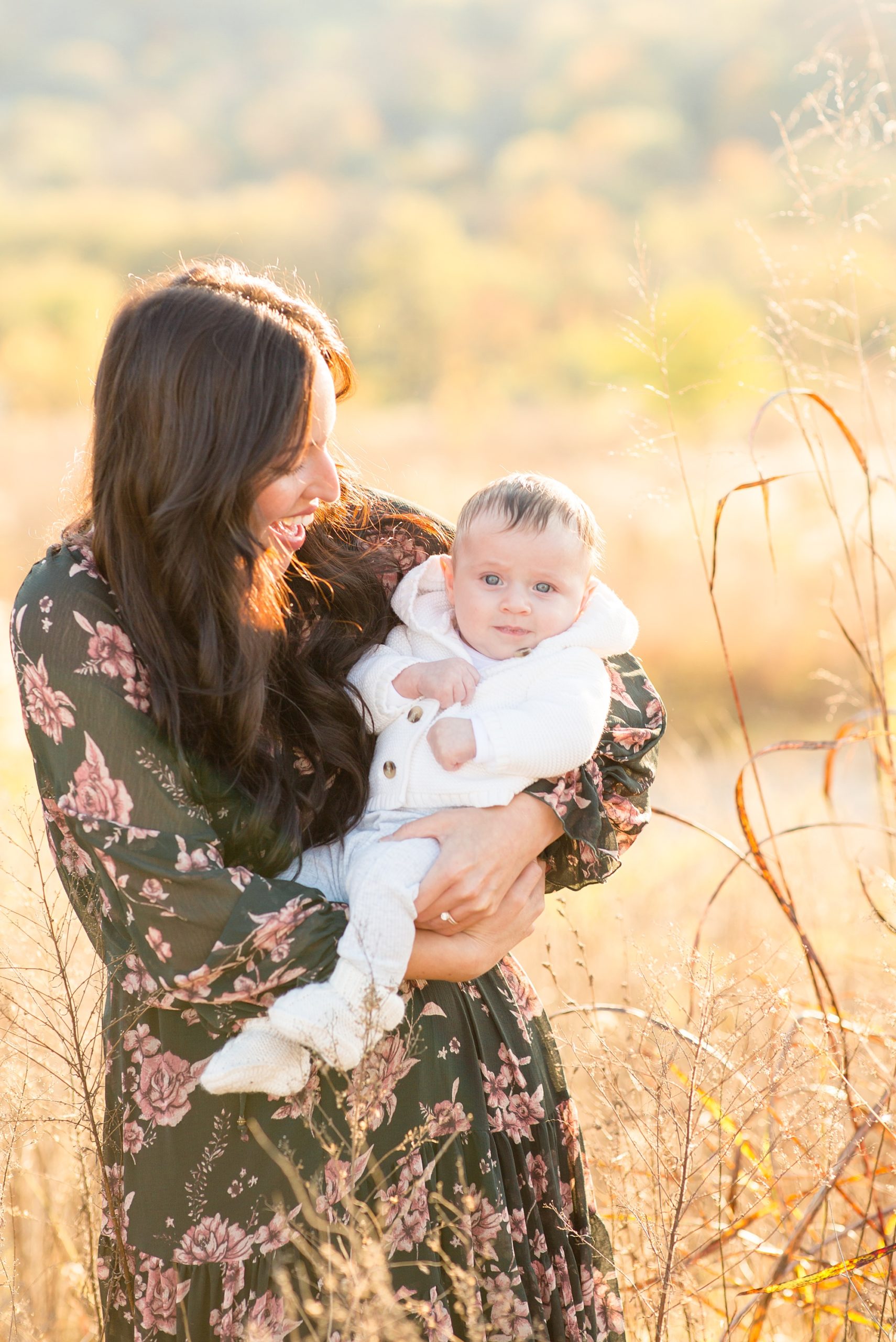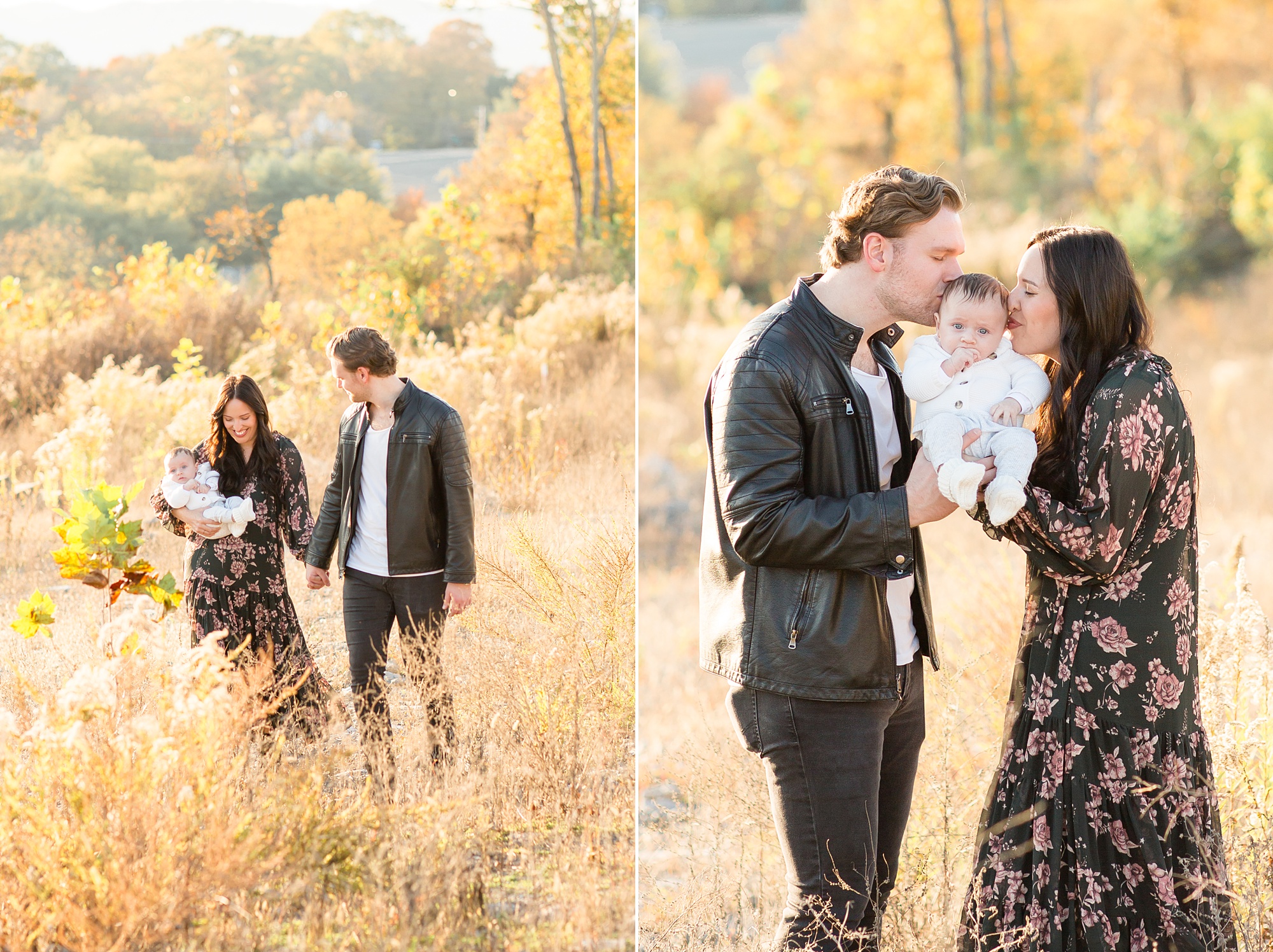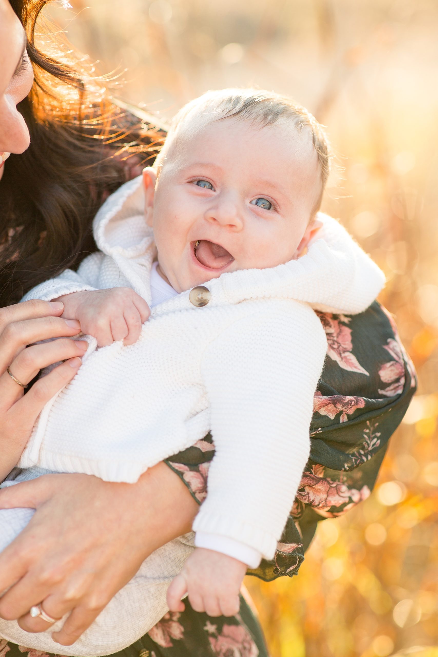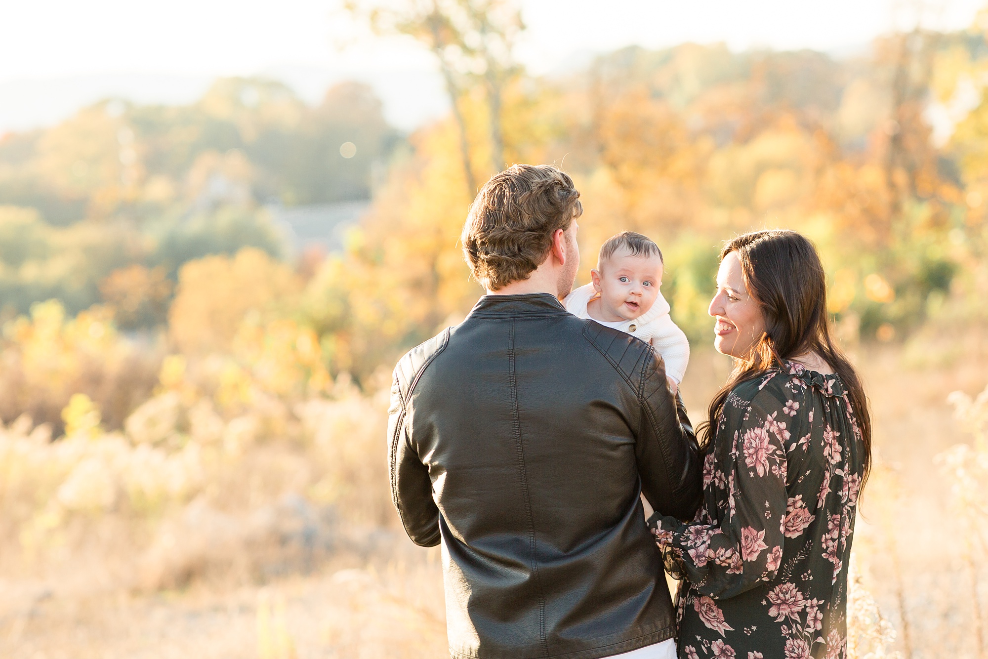 Stephanie and her husband showed up looking like models and with the most perfect glowing light, we captured their fall family session. I'm so appreciative that they trusted me to find the perfect spot (in a cul-de-sac) for the photos. It just goes to show you that anything is possible when it comes to the right light and trusting clients! During our session, I got to see more of the Morris family. I loved learning about them all and watching them with their sweet little guy. He was all bundled up but was great for us! I even got some little laughs and smiles as his parents played with him throughout the session. Capturing new parents with their babies is such a special part of family sessions.