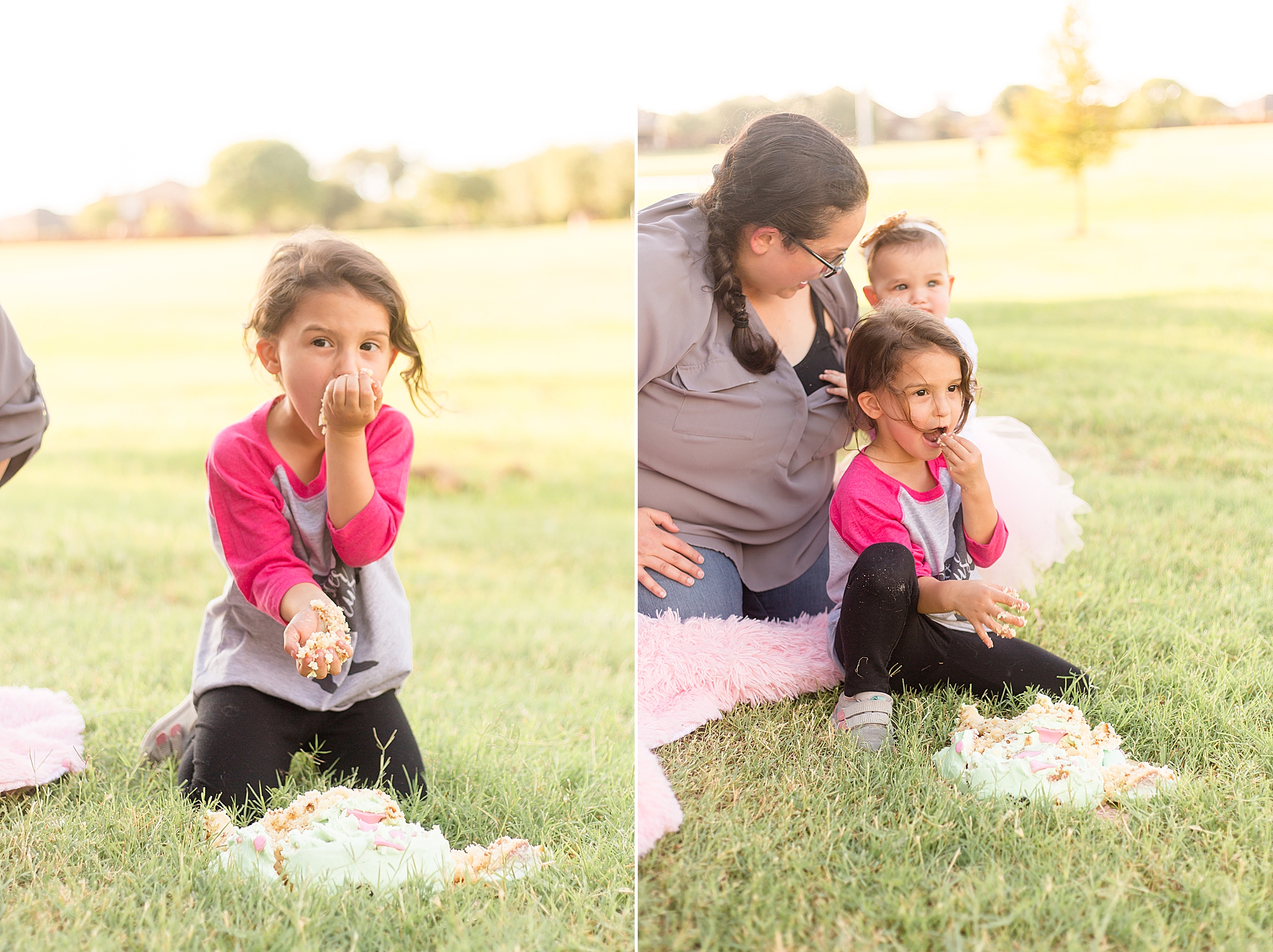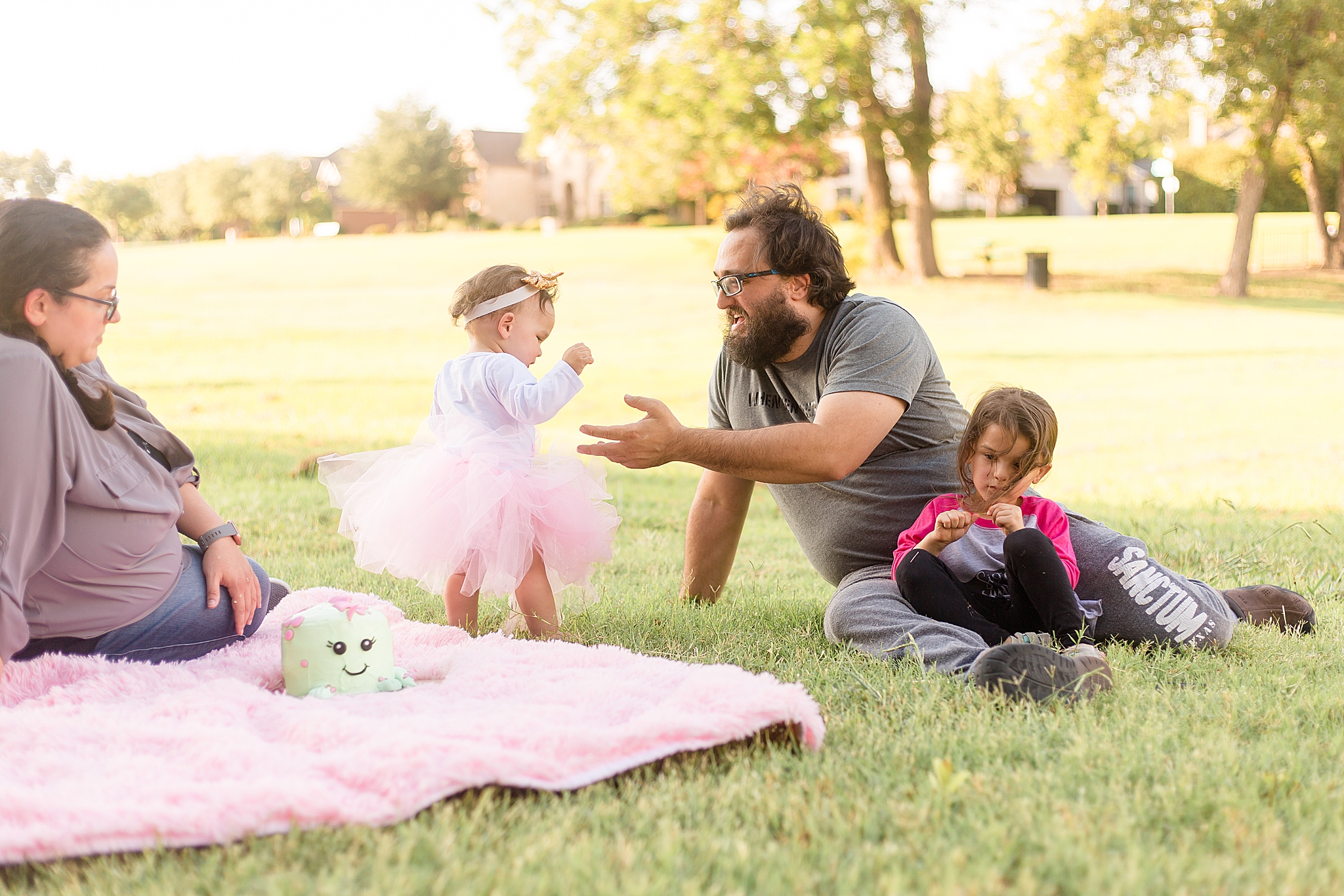Oh my gosh, I am SO excited to be sharing Tatum's McKinney TX cake smash with you today! Tatum and her entire family are some of my favorite people! I've been photographing them all since Parker, Tatum's older sister, was 18 months old. To watch them grow over the years is such a special honor!! When  Tatum's mom reached out about capturing a cake smash for her first birthday, I was super excited to see everyone! We went with an outdoor setup and the whole family came along to celebrate with her.