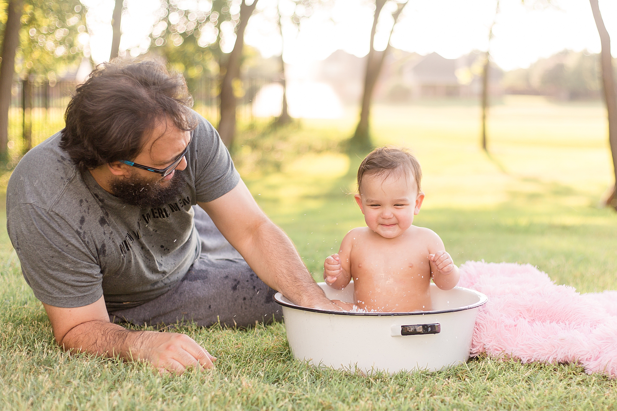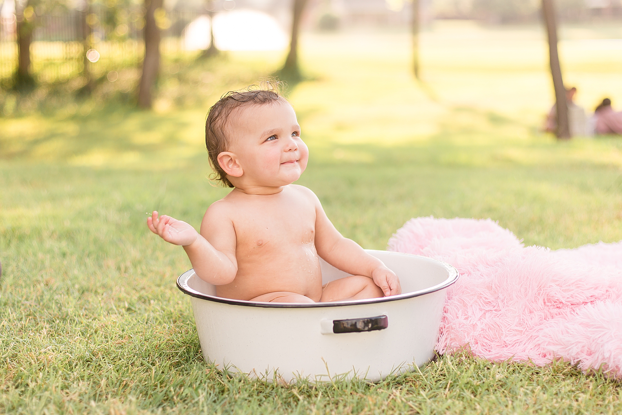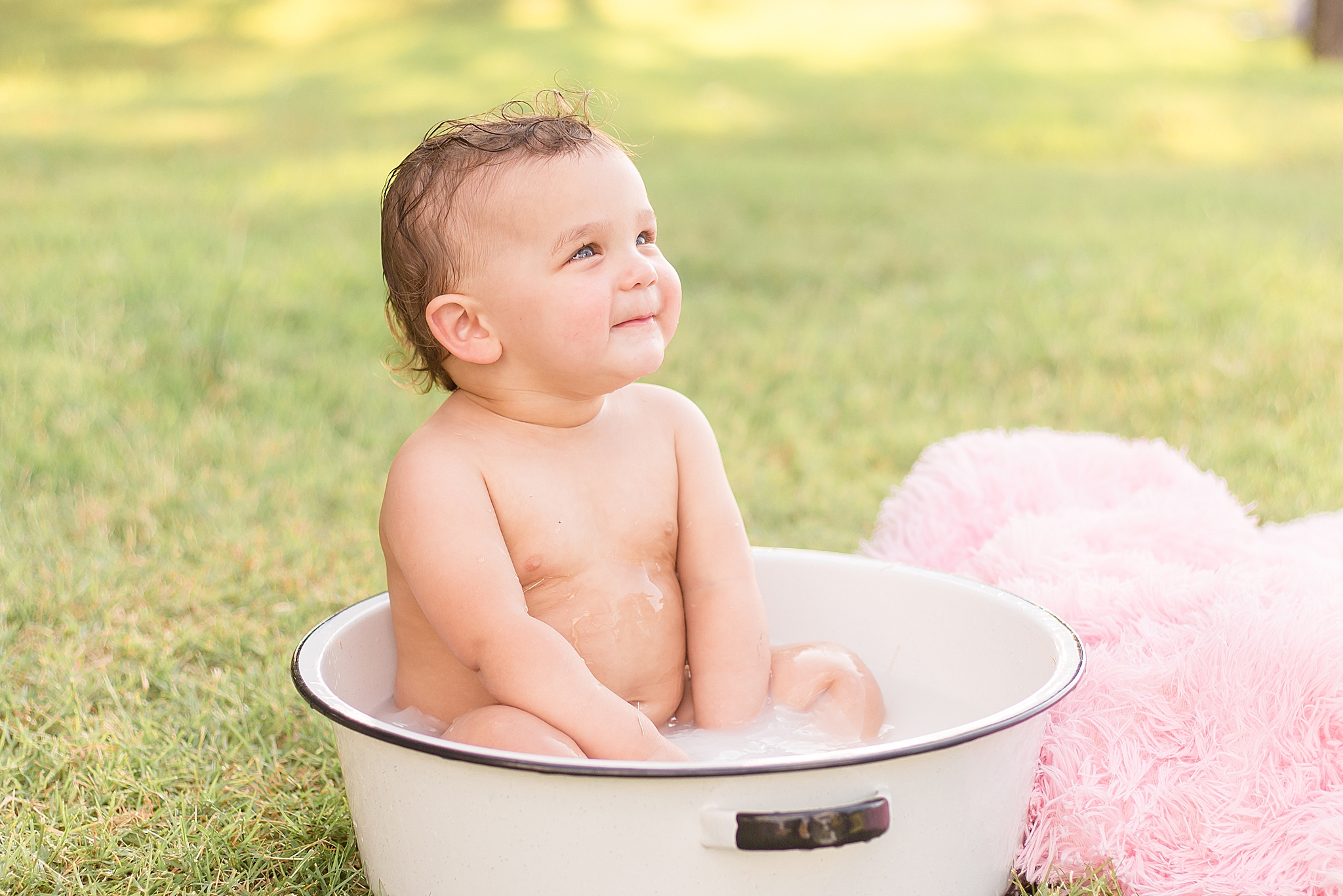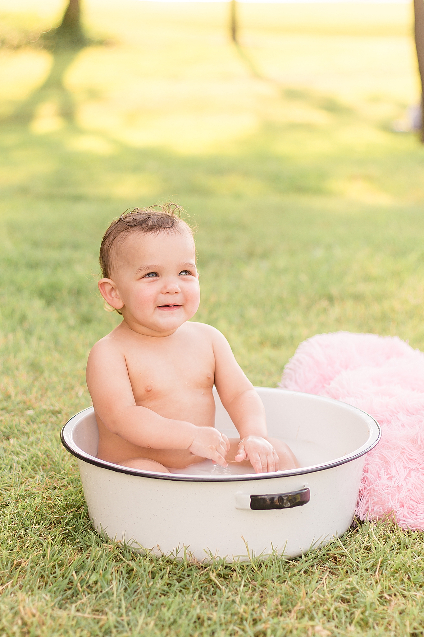 Tatum was a bit nervous around me when we first started our session. I don't blame her – she's a COVID baby, so she hasn't been with too many people. It's okay!! We all had a lot of fun trying to get her into her cake. Once it came out, she wasn't super interested in it – and that's okay, too! No matter how your session (cake smash or otherwise) goes, we'll have a blast and capture some special images! I did manage to get a few smiles out of Tatum – and when the bathtub came out at the end, she was ALL about it. Definitely a water baby!! And Parker was thrilled that Tatum wasn't too into her cake. More for Parker!