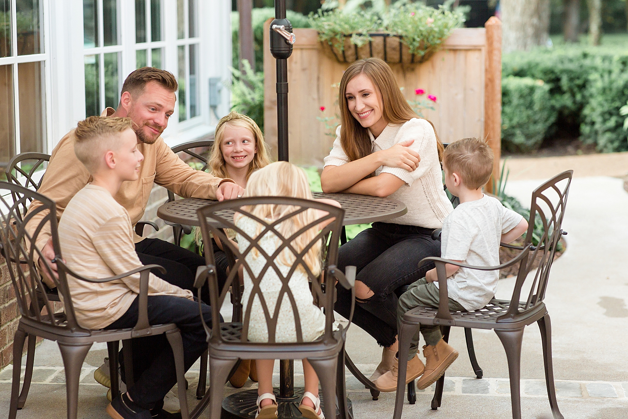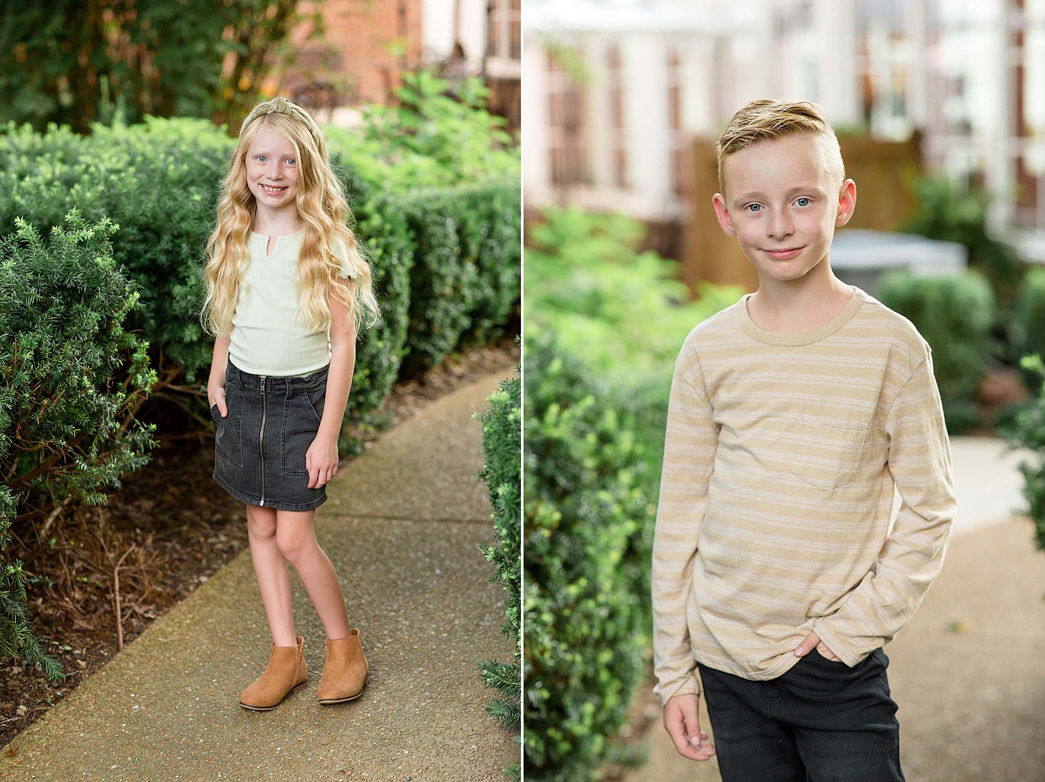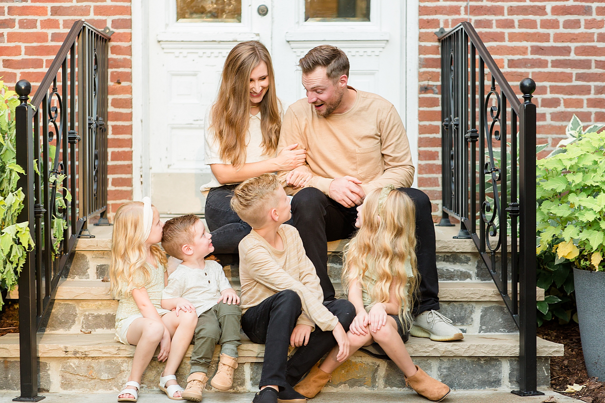 What made the Wallace's family session even more fun was that I had my two little ones with me during the photos. Not only was I capturing these four cuties, but I got to bring my kids with me! Everyone was amazing and we had lots of fun laughing outside the coffee shop. The Wallace Family is seriously just the cutest and I'm still pretty obsessed with these images – especially because of the beautiful outfits they chose. It was the perfect mix of colors and designs. And everything popped against the brick walls, so kudos to this family for choosing a great location AND great outfits!