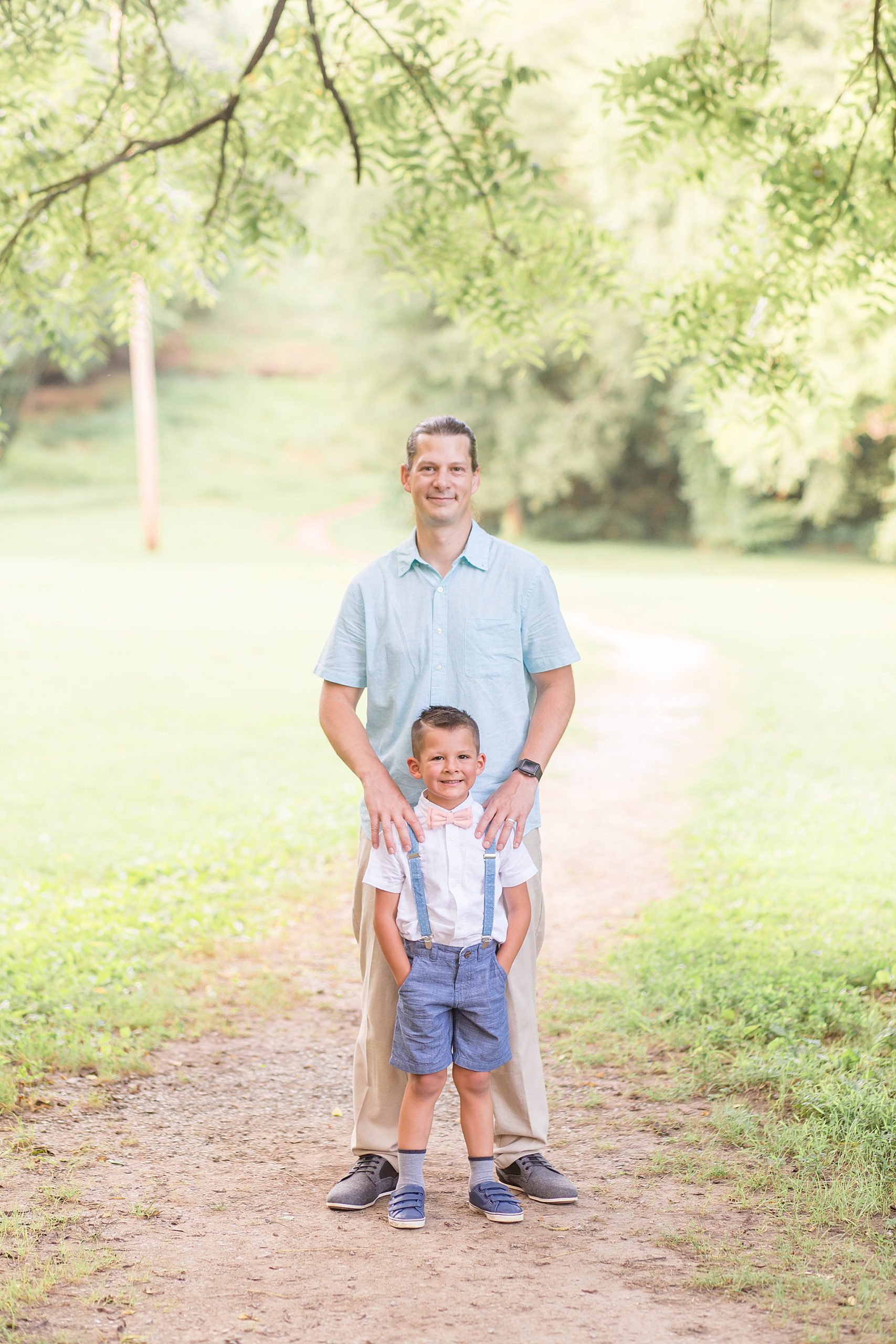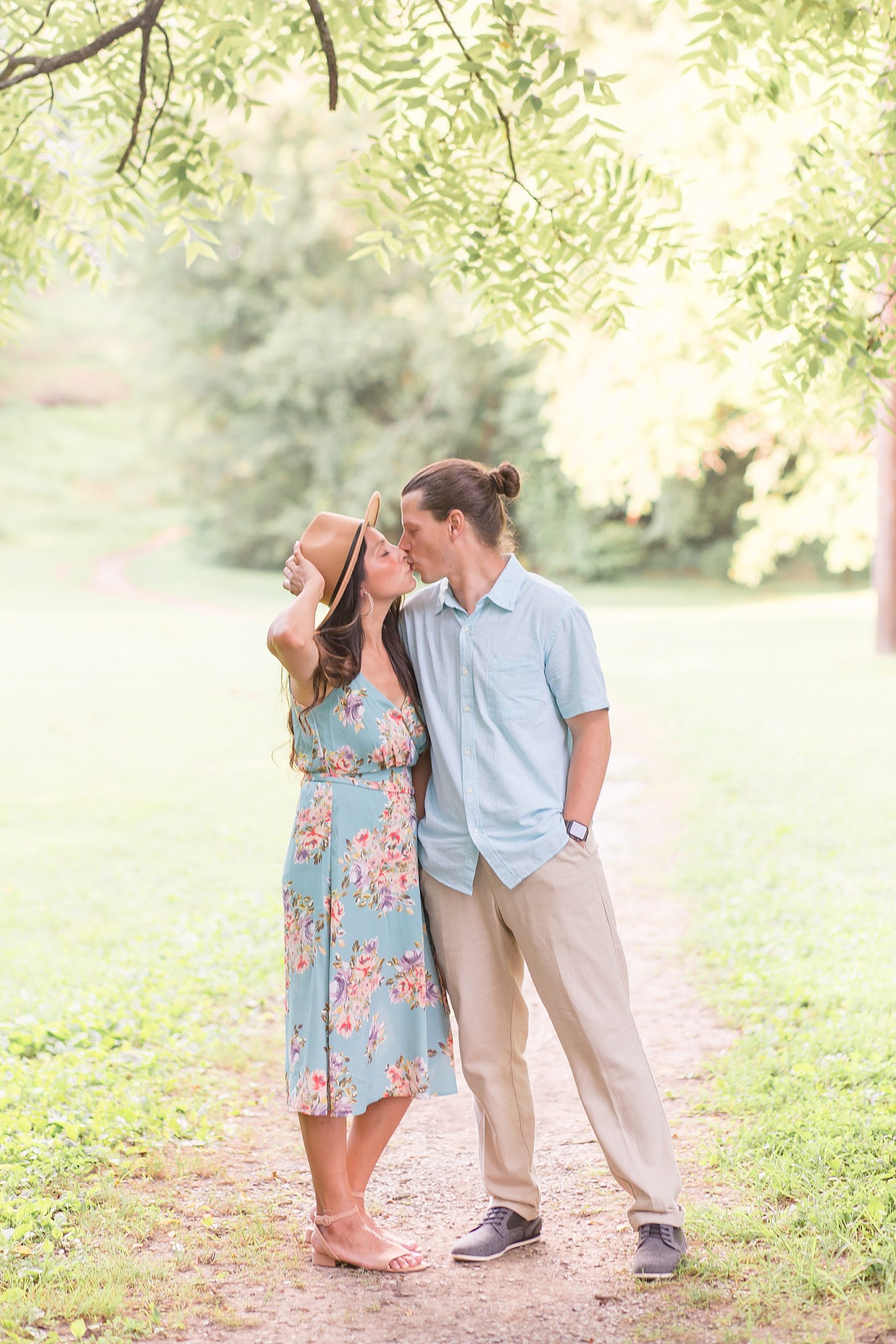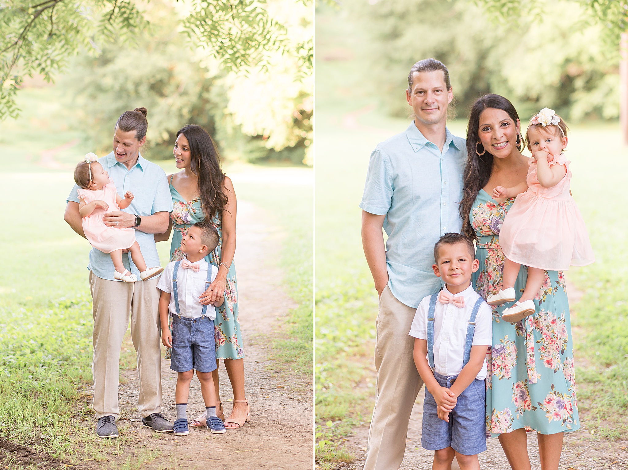 Pinkerton Park is a beautiful little park near downtown Franklin, Tennessee. There's a gorgeous pedestrian trail and other spots throughout the park that turned out to be the perfect backdrop for the Connell's portraits. When they arrived and I saw the outfits that Anabell had planned, I couldn't stop smiling! She and her husband paired perfectly in their light blue options. And the kids looked SO cute!! I still can't get over that adorable flower crown for her baby girl. She brought along a fun hat for herself and some other props we incorporated into the session.
