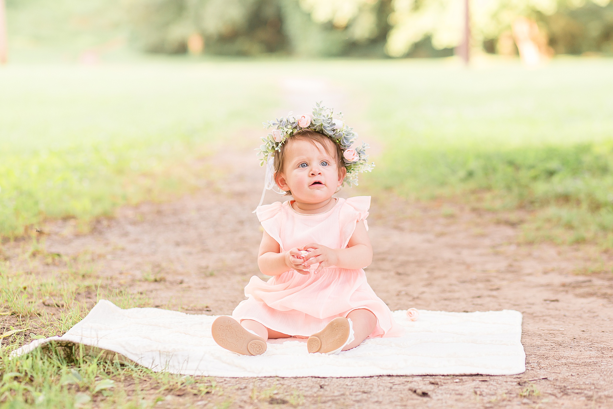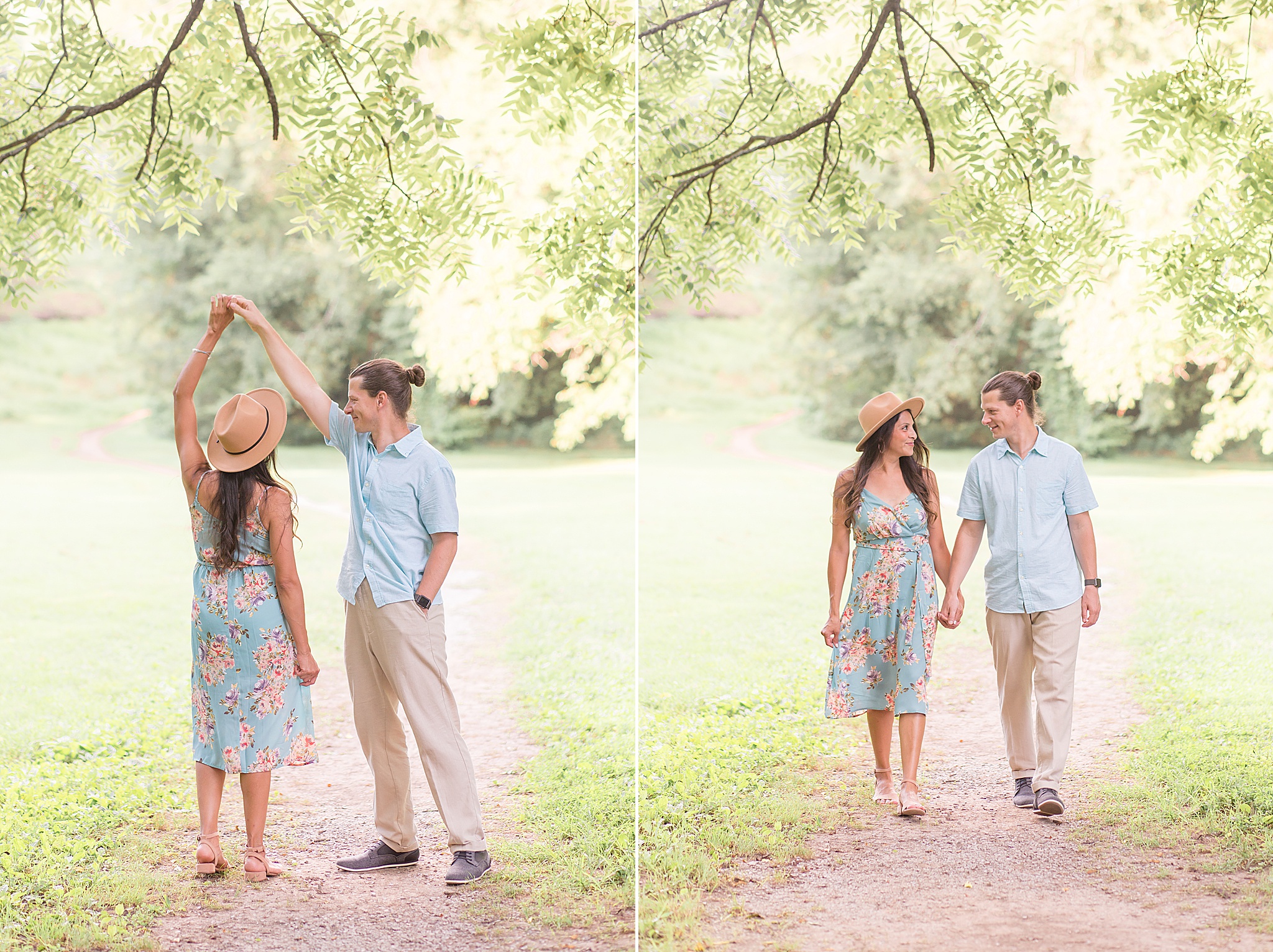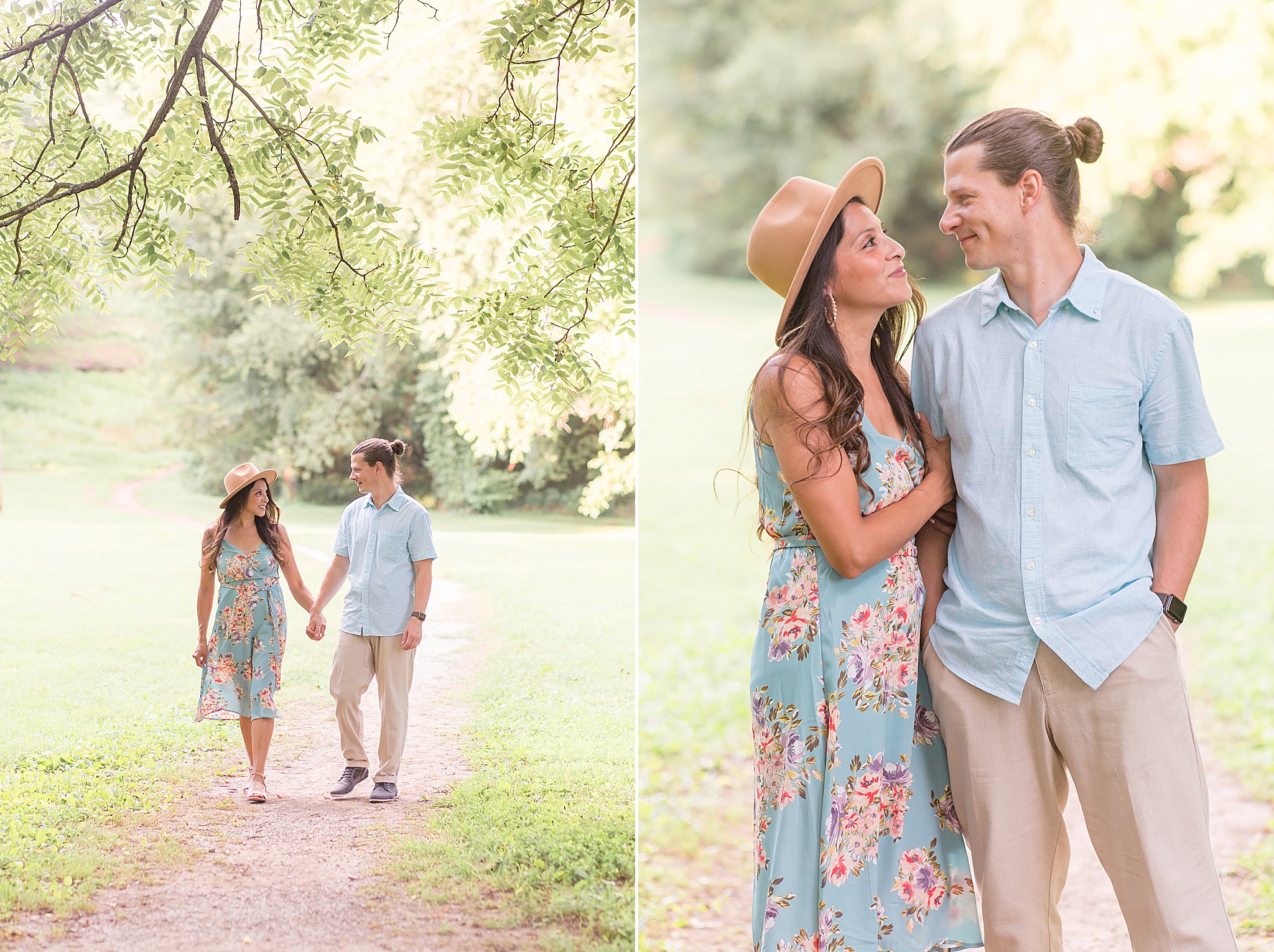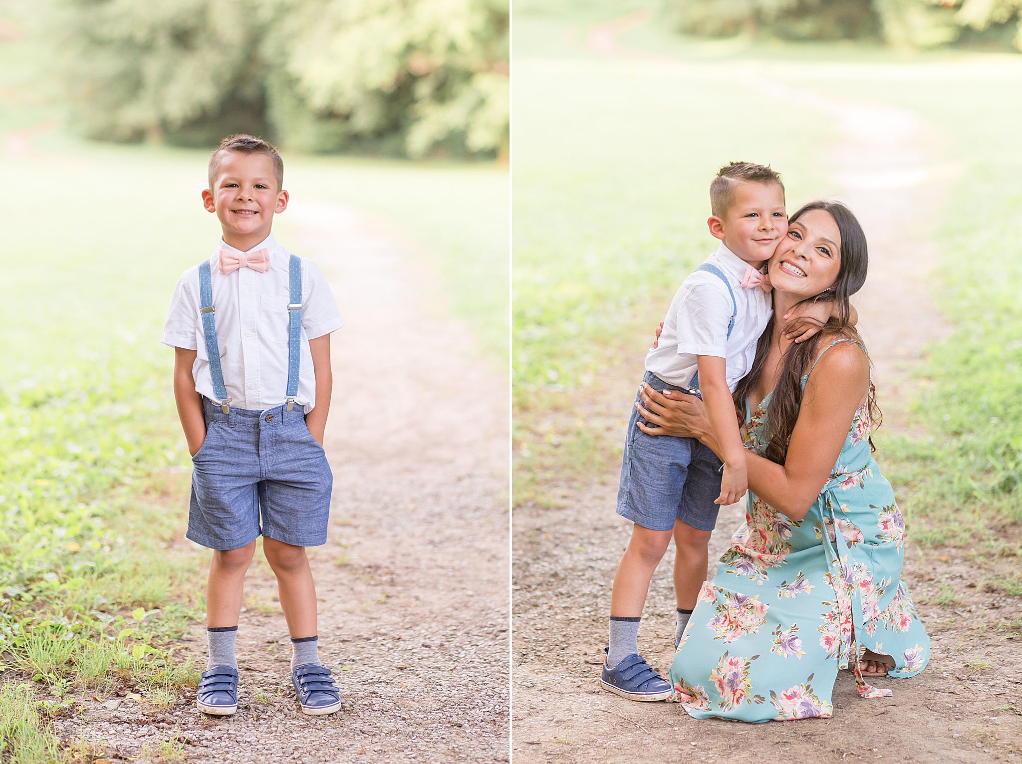 Pinkerton Park is a beautiful little park near downtown Franklin, Tennessee. There's a gorgeous pedestrian trail and other spots throughout the park that turned out to be the perfect backdrop for the Connell's portraits. When they arrived and I saw the outfits that Anabell had planned, I couldn't stop smiling! She and her husband paired perfectly in their light blue options. And the kids looked SO cute!! I still can't get over that adorable flower crown for her baby girl. She brought along a fun hat for herself and some other props we incorporated into the session.