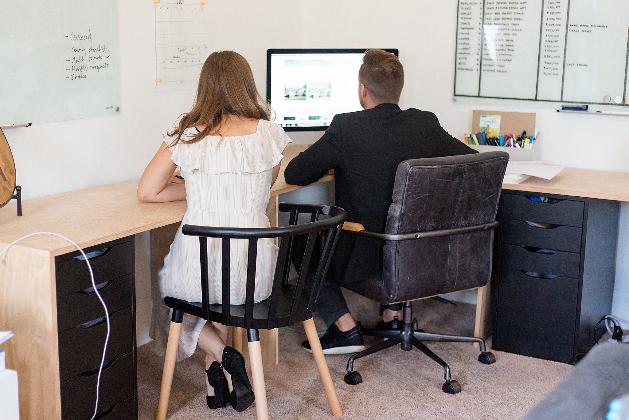 Working with Casey, Kyle, and Amie was a dream come true. Their Franklin TN branding session took place in Casey and Kyle's beautiful home. With a perfect patio and their home office, it made the most sense to capture their branding session in the places they work most as a team. Branding sessions are about more than just traditional headshots – although we took those as well! They're a chance to document what makes your brand unique and special. For these three, that meant capturing the home office space they've designed, and some “working” portraits.